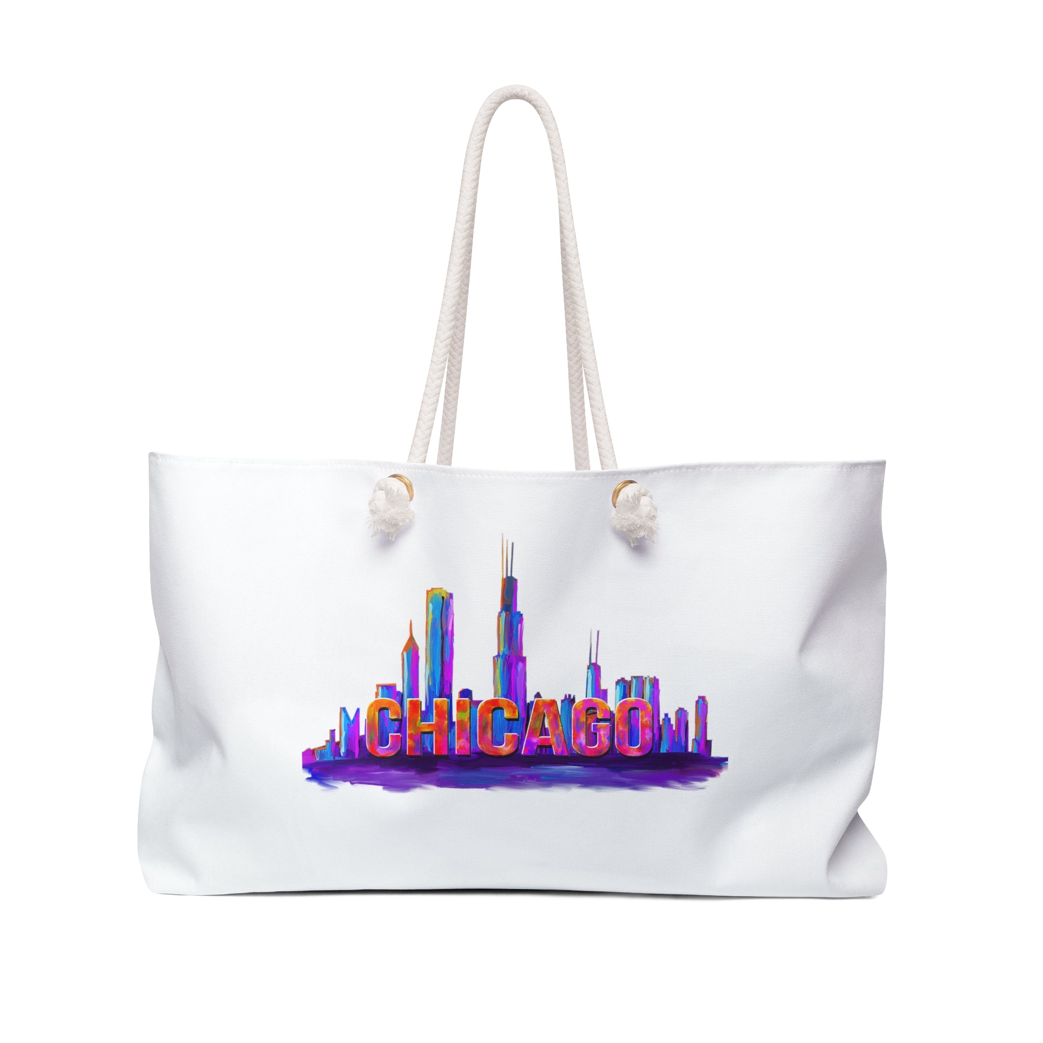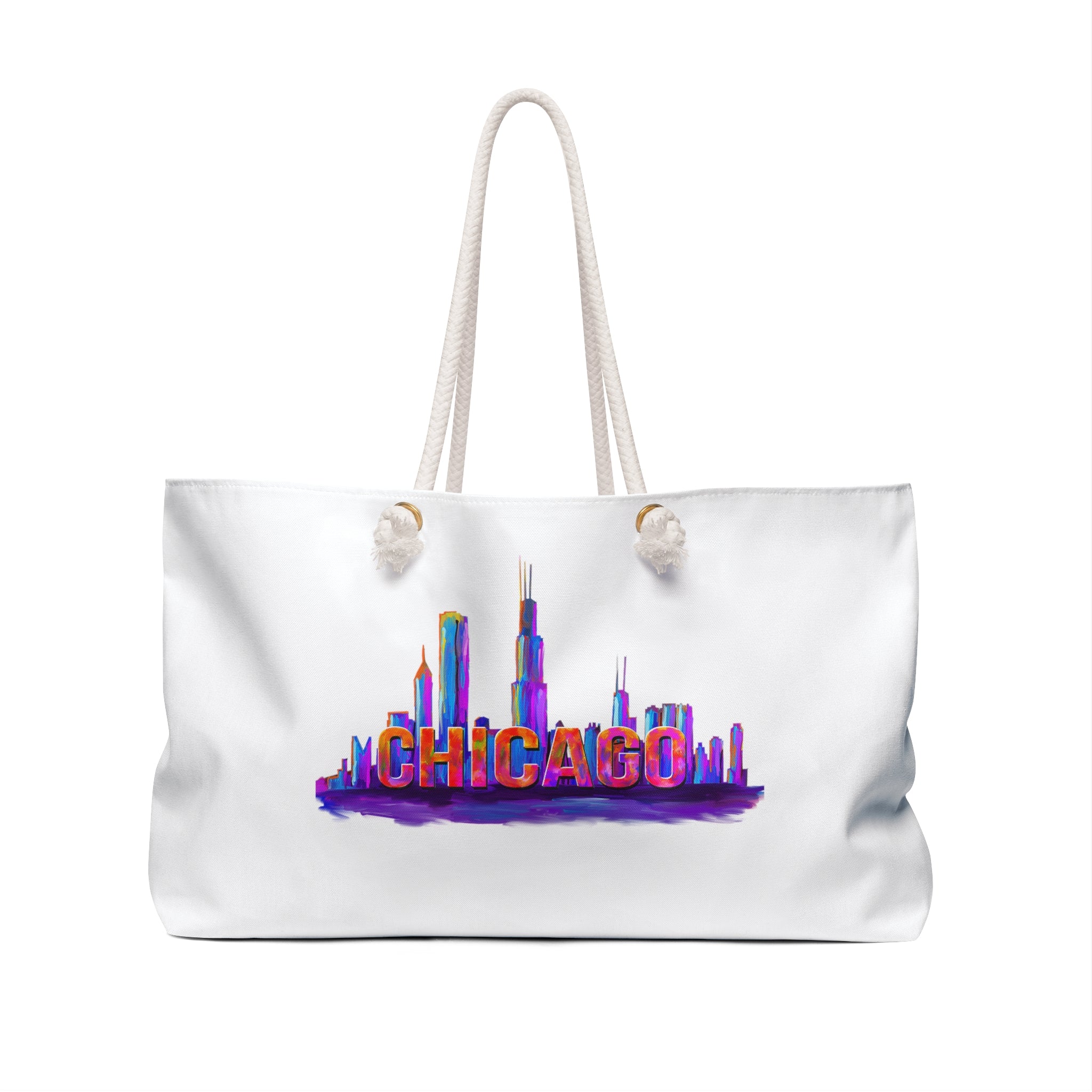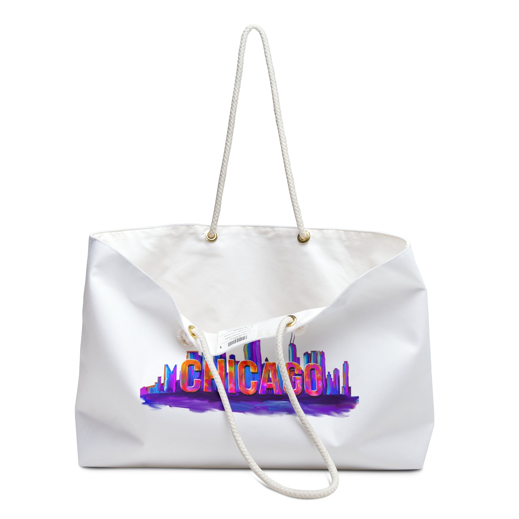 This bag is big and will hold everything. A great option for day trips when you need to carry a lot, or for packing your things for a weekend trip. The durable bag is open at top (no zip or buttons) and wide at the bottom to allow for maximum items inside. It has plenty of space for whatever you need on hand, and then some! Thick rope handles with a 12" drop fit over the shoulder or allow for carrying in your hand. Make a statement with this vibrant print, cream-colored rope handles and gold grommets.