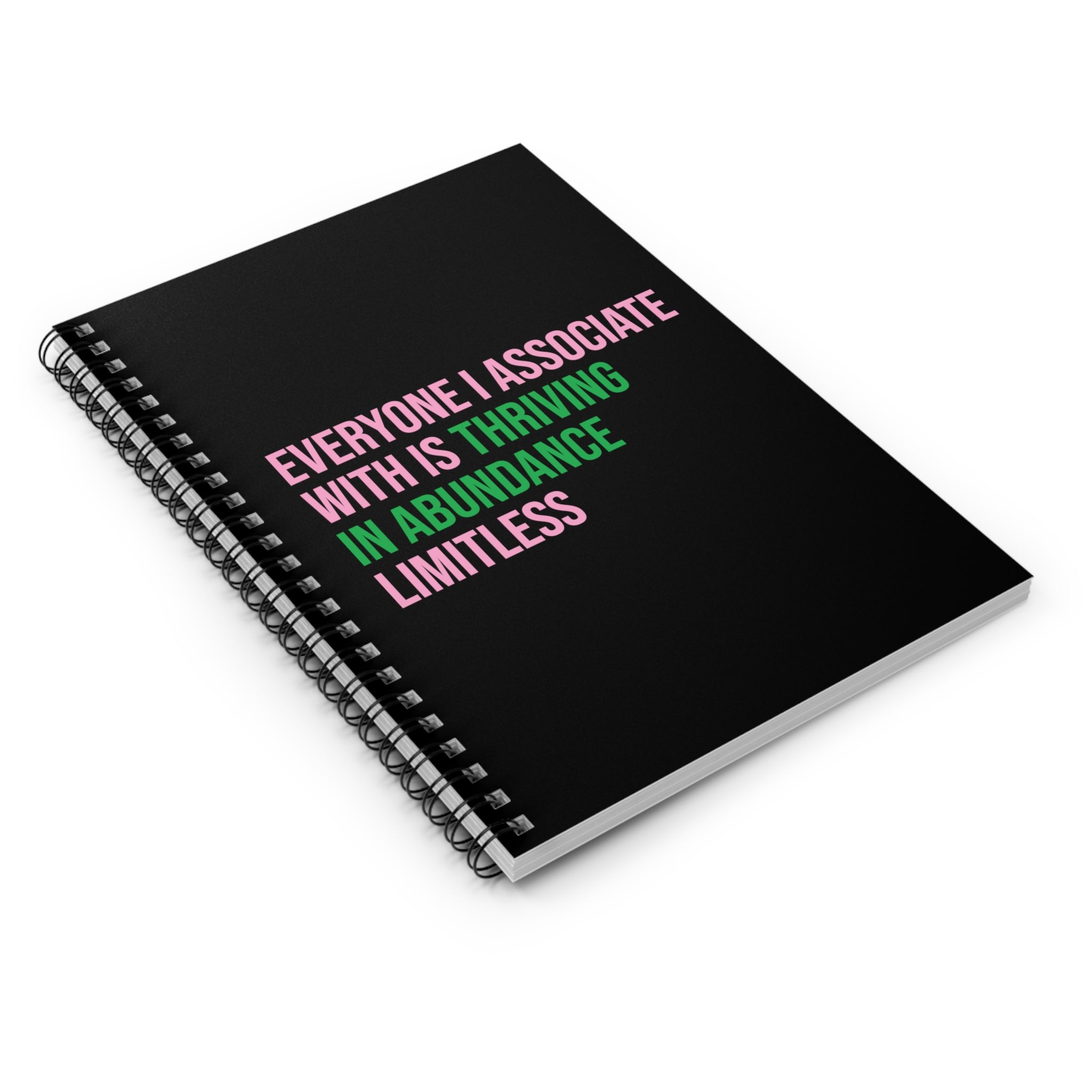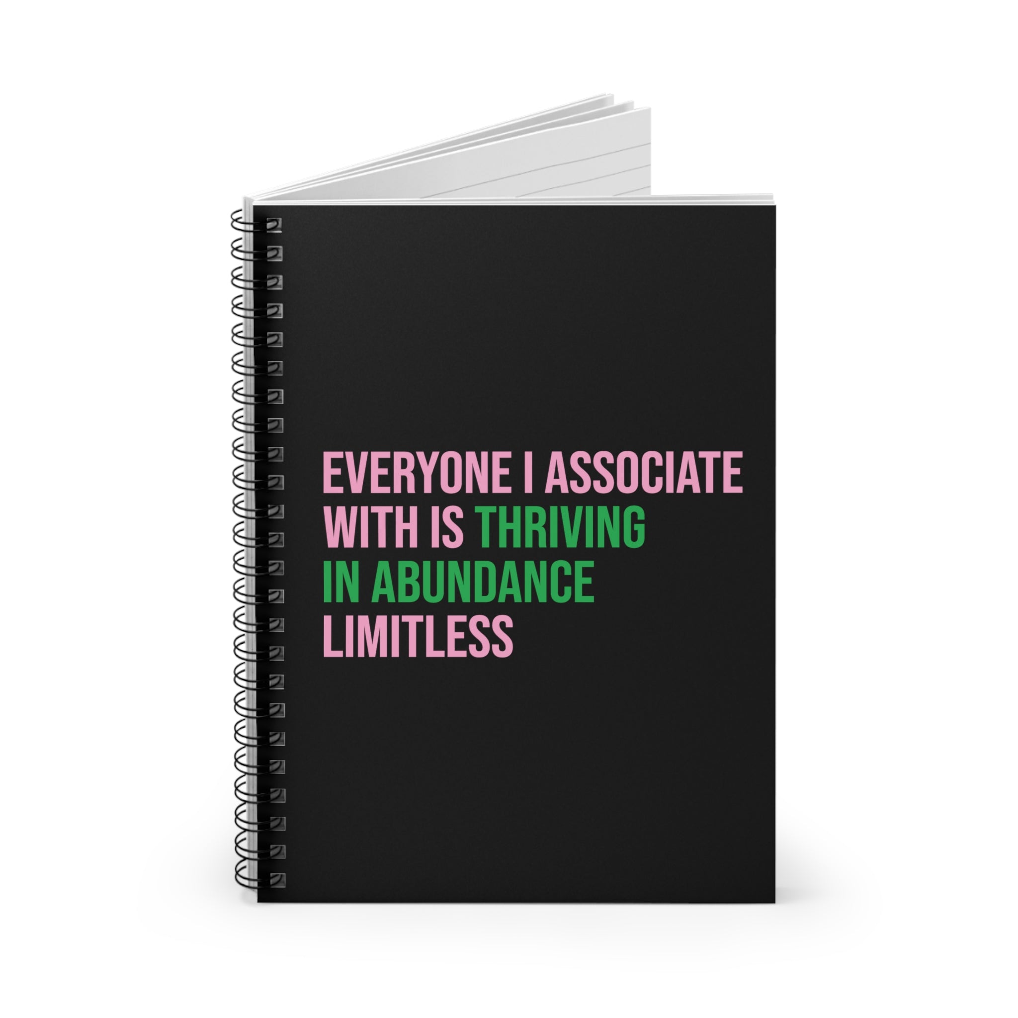 Everyone I Associate With is Thriving in Abundance Limitless Spiral Notebook - Pink & Green