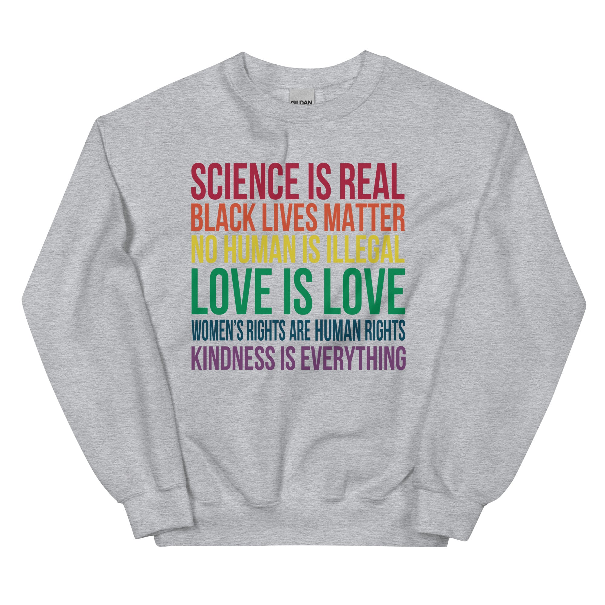 Message: Science is Real Black Lives Matter No Human Is Illegal Love Is Love Women's Rights Are Human Rights Kindness Is Everything